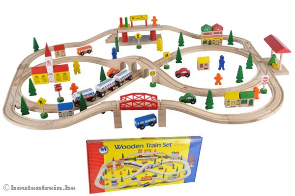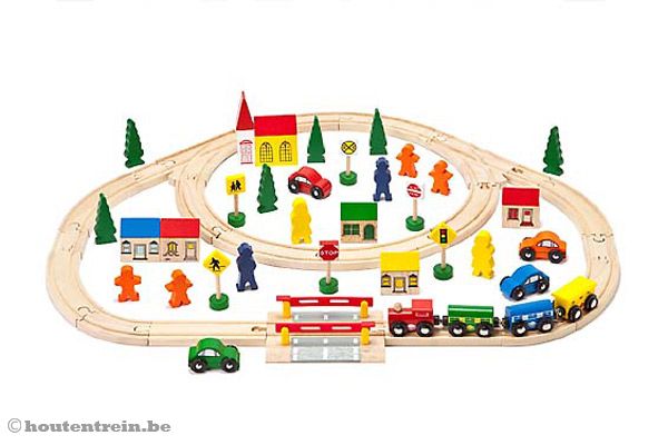 Om te starten kunt u kiezen voor een complete houten treinset. Deze setjes bestaan standaard uit rails, locomotief met wagon(s) en, afhankelijk van de houten treinset, diverse extra's zoals gebouwen, poppetjes, bruggen en/of voertuigen. Niet alle houten treinsetjes zijn even groot. U heeft de keuze tussen een kleine starterset met daarin de basis of een wat uitgebreider setje. De grootste houten treinset bestaat uit 140 verschillende onderdelen en deze is vanzelfsprekend completer dan een basis pakket bestaande uit 9 onderdelen.