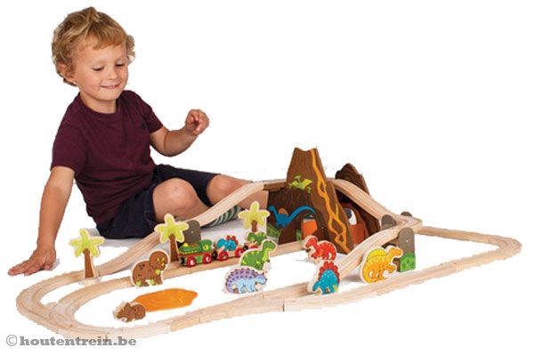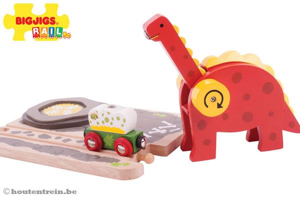 Een brug met een blauwe dinosaurus! Zijn ruggengraat is van vilt en bestaat uit twee delen. Deze kunnen door middel van klittenband aan elkaar worden gemaakt op het bovenste punt. Zo tovert u de brug om in een tunnel. Bij de brug krijgt u ook twee railstukken. Integreer de brug tunnel in uw treinset voor extra plezier!